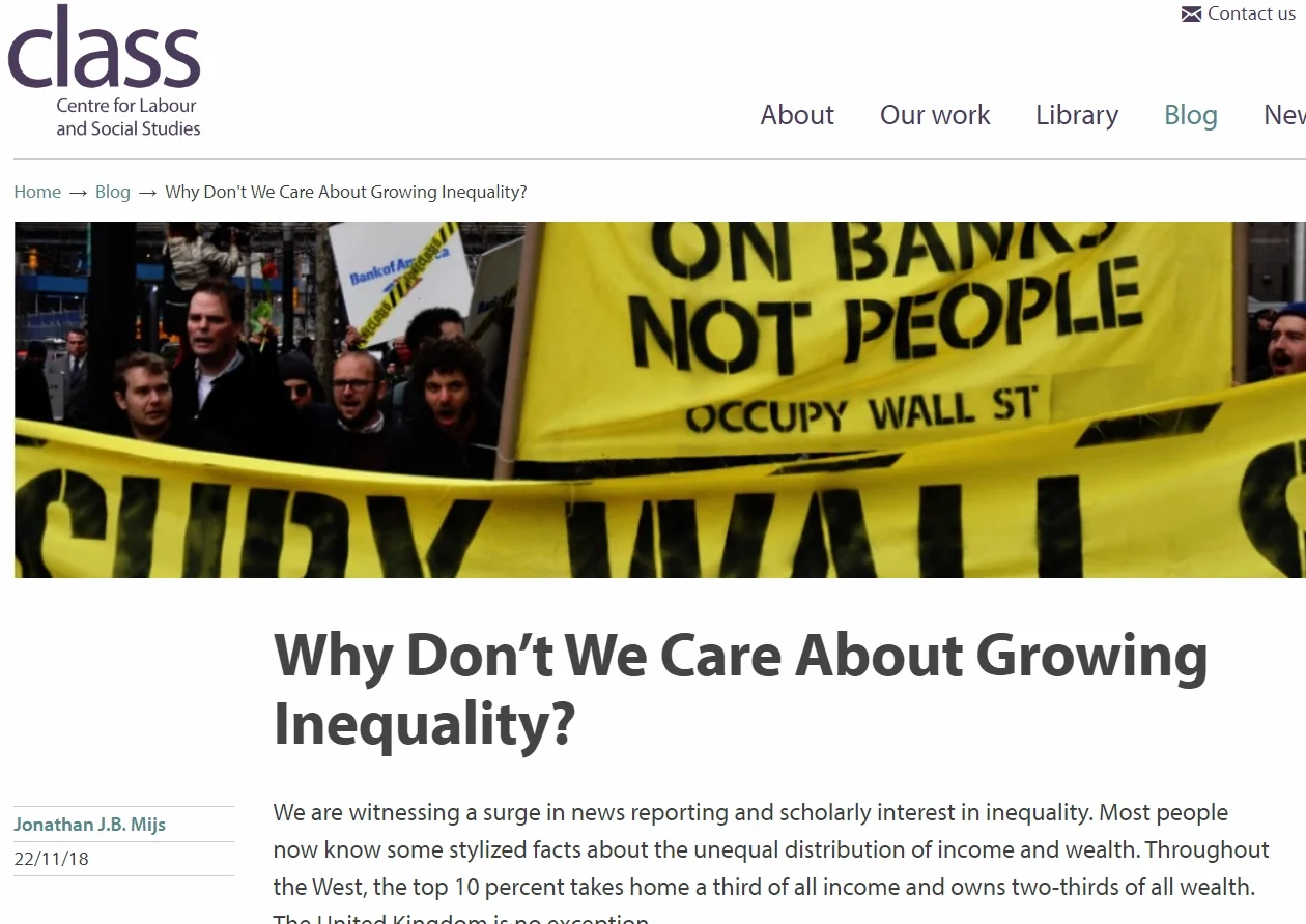 “Research has demonstrated a dramatic rise of income inequality in the West. Today, across advanced capitalist countries, the top ten percent of households take home about a third of all income and own two-thirds of all wealth. Despite what scholars, journalists and some politicians consider a worrying trend, there is no evidence that people have grown more concerned about inequality. In fact, citizens of more unequal societies are less concerned than those in egalitarian societies. How to make sense of this paradox?" Read more.