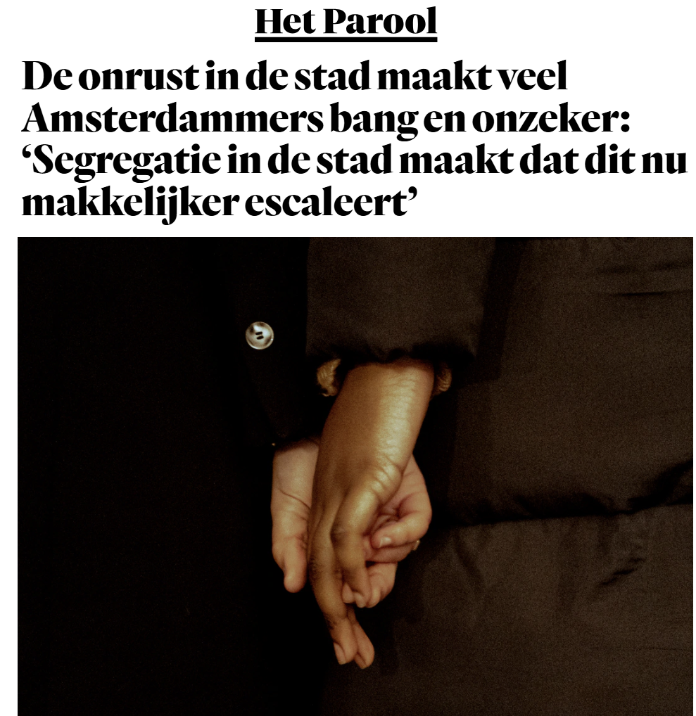 De onrust in de stad maakt veel Amsterdammers bang en onzeker: ‘Segregatie in de stad maakt dat dit nu makkelijker escaleert’ (Dutch)